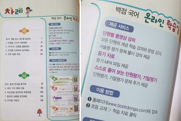 동아홈페이지와 교재에서 자주 등장하는 QR코드를 이용해서 이용하면 되겠네요.
