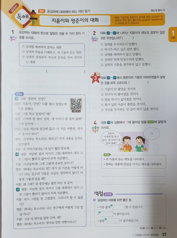 백점 국어는 이 단원도입을 만화로 재밌게 표현해주기때문에 아이들이 단원에 들어가기 전 흥미와 학습욕구, 집중도도 동시에 올릴 수 있는 효과를 가져오게 해주었네요.