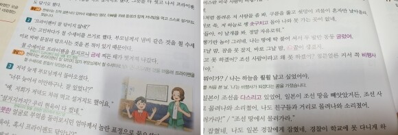 교과서 지문을 옮겨오긴 했지만 그대로가 아닌 마치 전과의 일부를 보듯 주석들이 달려있어요.