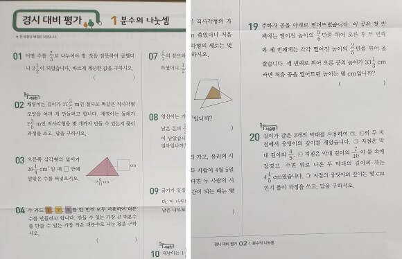 아이들이 학교에서 실제 보는 시험은 그렇게 지문별로 보지 않더라고요.