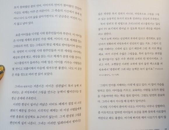 바로 어른들의 생각에 틀에 갖힌대로 아이들의 생각을 이끌기보다 열린 생각을 끌어주기 위해서요.