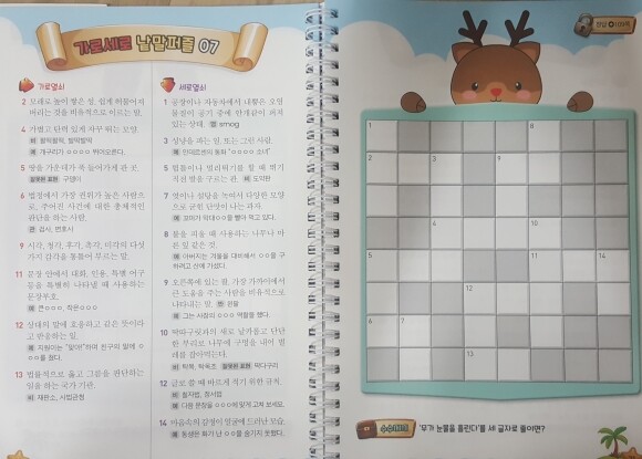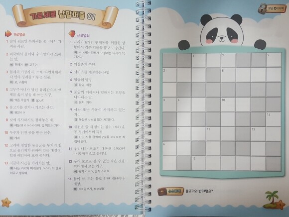 이 이야기를 하는 이유는 가로세로낱말퍼즐의 제본이 바로 이 스프링 제본이 되어있기 때문이에요.