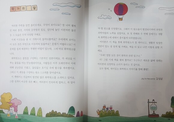 하지만 이 책은 초등학교 선생님이 쓰신 책답게 아이들의 눈높이에 맞추어 어렵지않고 재미있게 풀어쓰신 책이라 읽는 내내 화학책이라는 생각? 어떤 책의 분류를 나누어야겠다는 생각도 들지 않고 가볍고 재미있게 읽어 나갈 수 있었답니다.