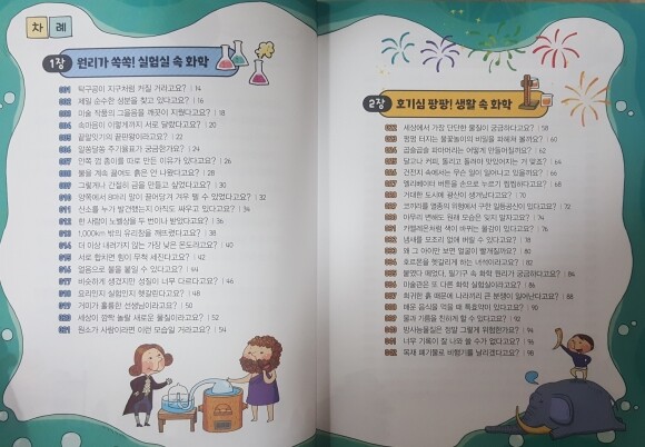 차례를 살펴보면 앞의 1장과 2장에서는 여러가지 실험실과 생활 속 화학에 대한 이야기가 있어요.