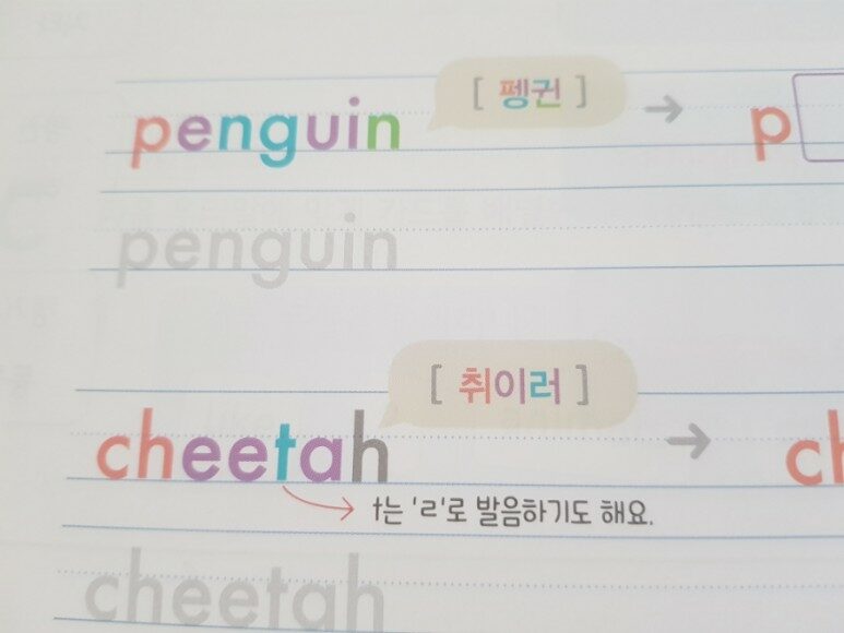 이 책은 애들이 혼자 영어 단어 읽을 수 있게 한글로 적혀 있다