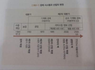 한편, 저자는 '기본 소득제'가 필요하다고 말하고 있었다. 2030년 제4차 산업혁명을 기점으로 제2의 대분기는 탈 노동화 사회로써, 자본가와 노동자의 격차가 심화될 것이라고 한다. 노동력은 필요 없게 되어 모두 무직상태가 되고, 자본가는 기계를 통해 기계를 만들어내 무한 자본에서의 무한한 자본을 다시 얻게 된다는 것이다. 이에 기본소득제를 통해 기계 자본으로 벌어들인 돈을 기본 소득제로 모든 국민에게 제공하는 것을 대안으로 언급하고 있다. 그렇다면 일하지 않고도 인공지능 로봇을 통한 풍요로운 사회가 가능하다는 것이다. 반면 그 반대로 노동가는 모두 수입이 없는 디스토피아가 될 수 있다는 것이다.