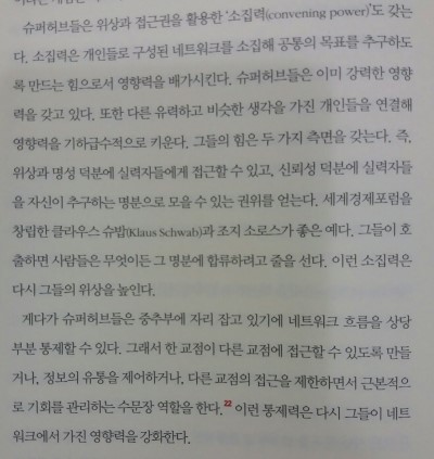 경제경영서이지만, 영화를 보는 듯한 책이다. 책이 두껍고 부담스럽고 더욱이 세계경제를 다루고 있지만, 읽다보면 점점 더 빠져드는 이야기, 우리가 모르는 세계경제의 거물들, 즉 슈퍼허브들의 인물들과 그들의 입지, 네트워크 내에서 작용하는 막대한 권력과 힘을 느낄 수 있었다.