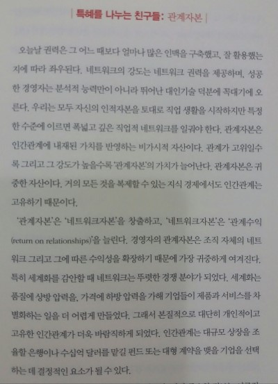 그녀가 말하는 건 슈퍼허브들은 우리의 상상을 초월하는 액수의 거래 및 정책 이슈, 투자 등등을 배타적인 그들만의 '네트워크' 속에서 모두 가능하다는 것이다. 그러한 네트워크 자체의 특징, 그들만이 그러한 그들만의 세계를 유지하는 이유, 참가비만 해도 어마어마하지만 초청장이 늘 모자랄 수 밖에 없는 그들이 이야기. 현실임에도 불구하고 영화와 같아서 너무나 현실감이 없지만, 그래서 한번쯤은 읽어봐야하지 않을까 싶은 책이다. 특히나 월가 및 미국의 거대 부의 창출과 유지에 대해 궁금해한다면 말이다. 무엇보다 네트워크 과학으로 살펴본 저자의 시각과 통찰은 매우 뛰어났다.