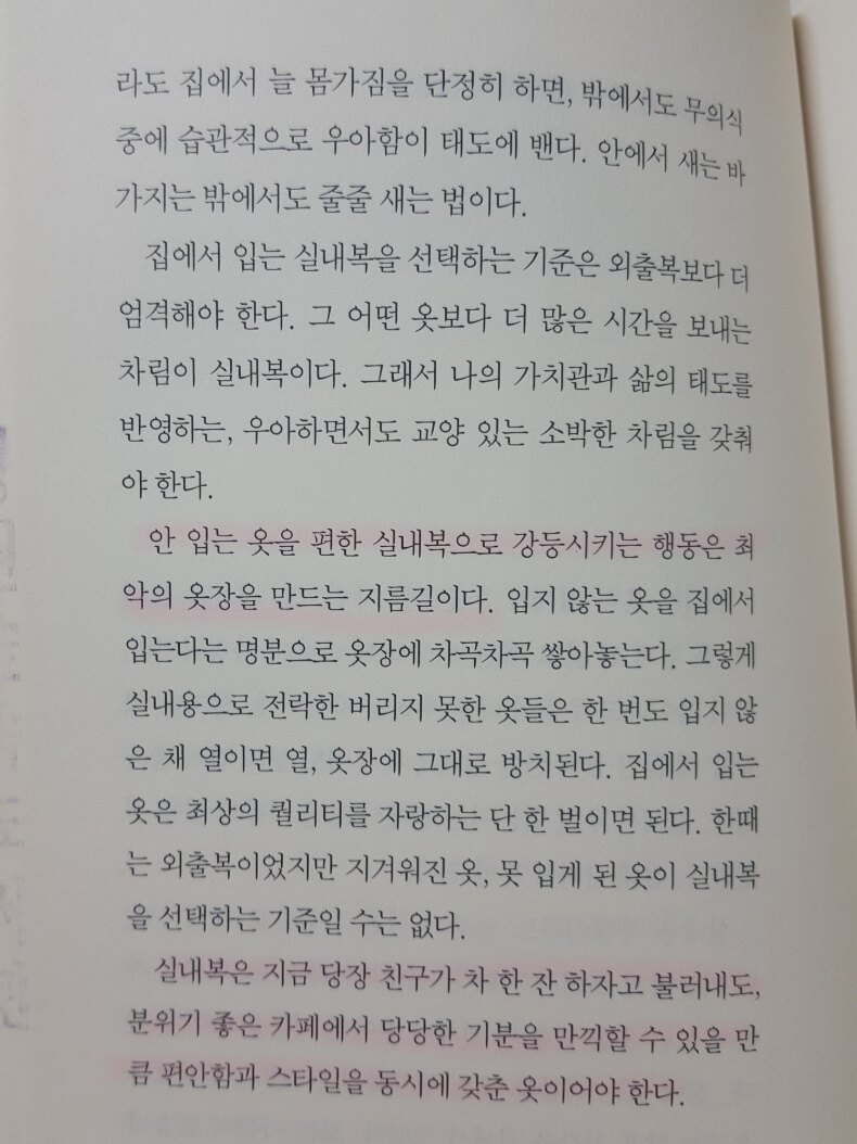 나는 그 누구와도 적당히 거리를 유지한다. 안전 거리를 확보하면 서로에게 좋다. 친밀함이 독이 되어 관계를해칠 수도 있기 때문이다. 거리감이 느껴지지 않을 정도의 안전 거리는 누구든 지킬 수 있다.자주 보지 않고, 매일 연락하지 않고, 좋은 이야기만해줄 것. 이렇게 세 가지만 지켜도 마찰이 잘 생기지 않는다. 언제 봐도 늘 반갑고 만나기 전에 살짝 설레기까지한다. - P134