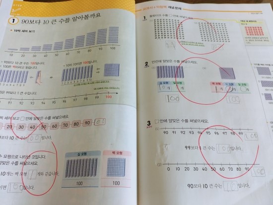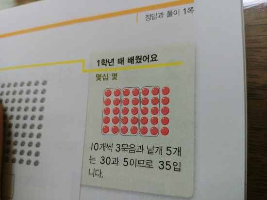 우측에는 1학년때 배운 십의 자리, 일의 자리의 수 몇십, 몇에 대한 설명도 해주면서