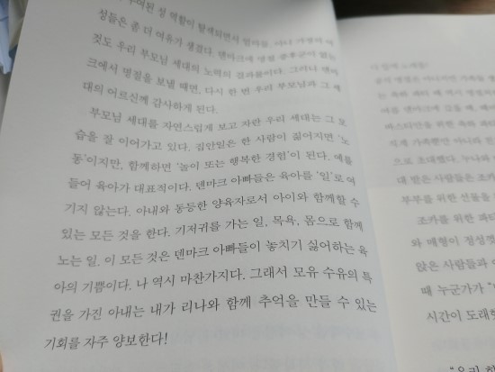 무엇보다 덴마크 출신의 저자와 결혼한 한국인 아내가 겪은 덴마크 생활과 문화가 한국과는 많이 다르다는 것을 보여준 것은