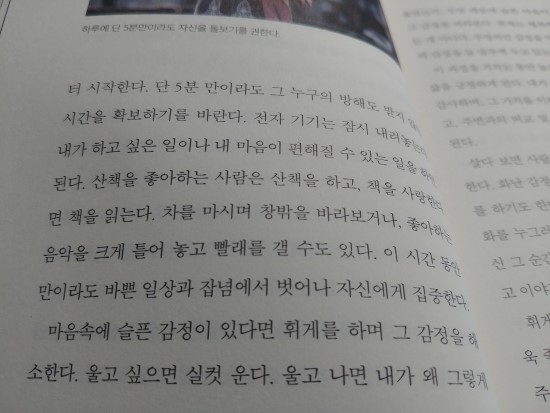 앞으로 나도 바쁜 일상속에서 나를 위한 5분을 투자하면서 하루를 보내도록 노력해야겠다.