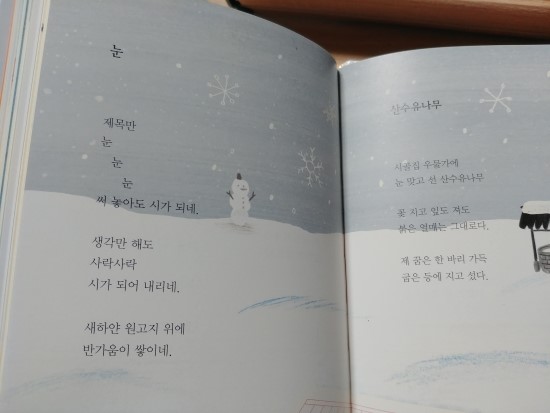 겨울주제에 맞게 눈 동시는 큰아이랑 천천히 읽어보기도했어요.