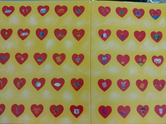 책 속을 들여다보니  하트속에 다양한 그림들이 그려져있어요.