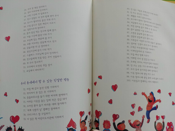아이들에게 친절한 행동을 습관화 하기 위해 거실책상위에 보이게 놓았어요.