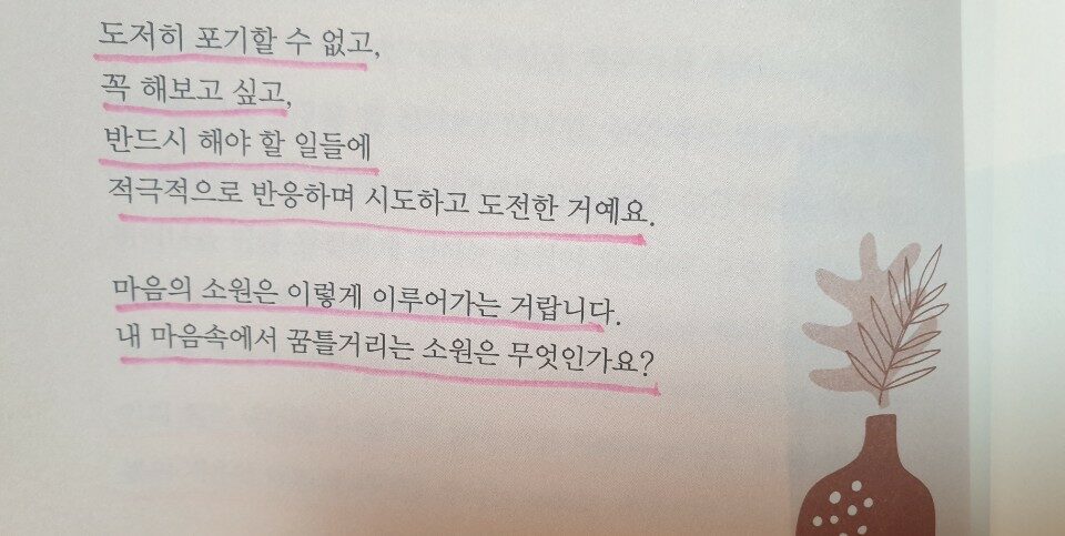 아파하면 스스로에게 상처를 더하는 것밖에 되지 않기 때문입니다 (71P)