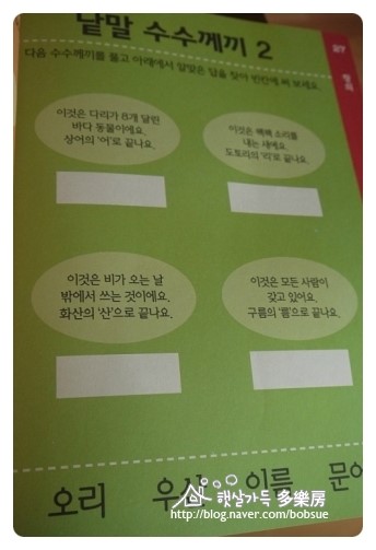 아직 우리 아이가 한글을 잘 읽을 줄 모르는데, 이런 식으로 수수께끼놀이를 하고,