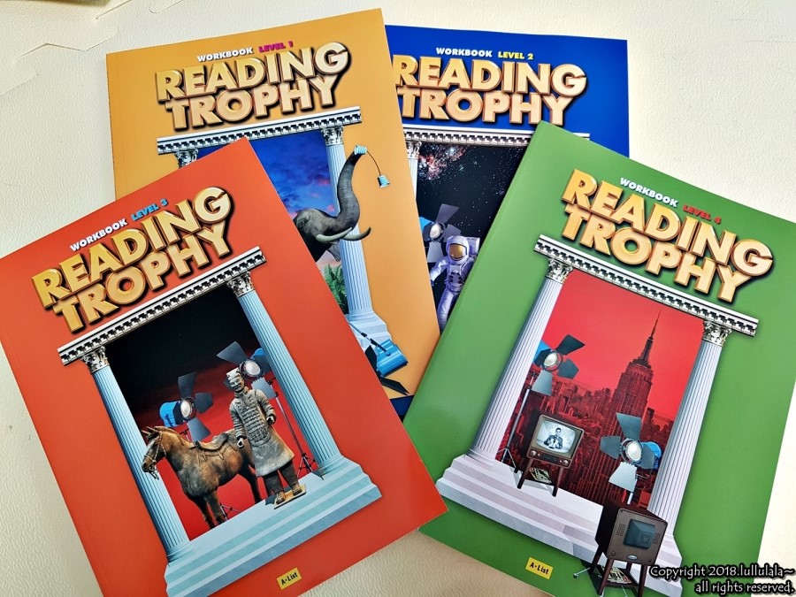 리딩트로피는 초등3~6학년 대상으로 출판된 교재로, 내용이며 단어 수준이 있어요.