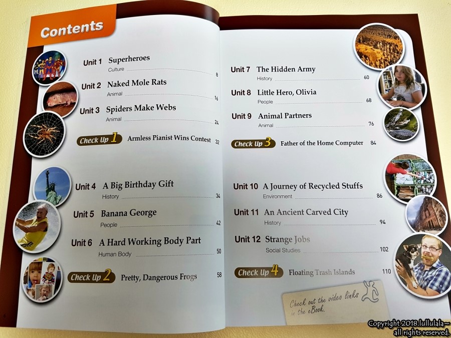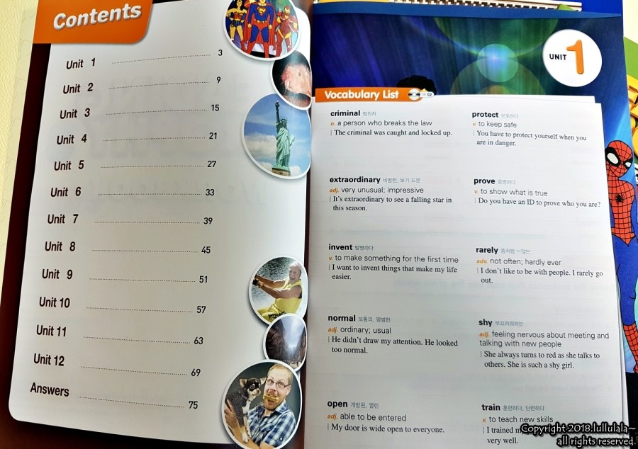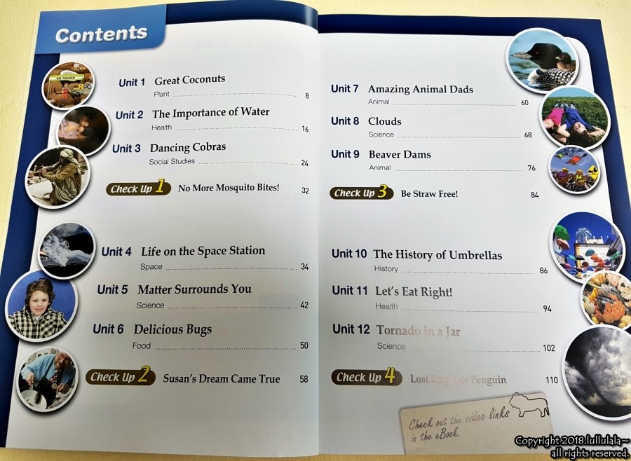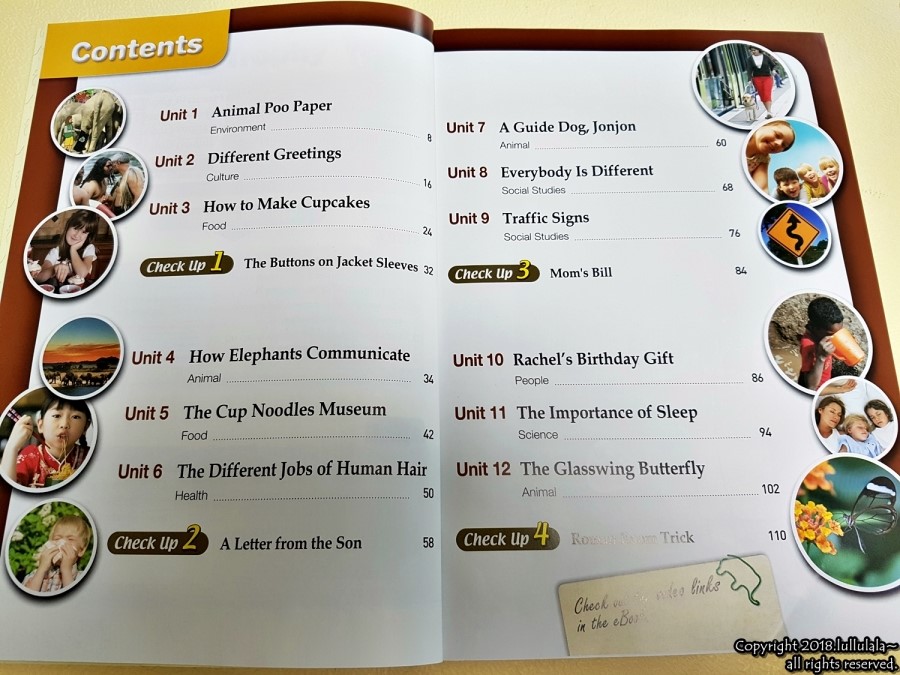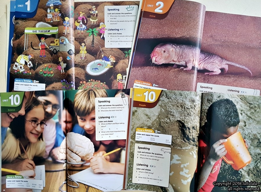유니트마다 하나의 주제로 4개 영역 즉 읽기, 듣기, 쓰기, 말하기의 학습이 가능하도록 구성되어 있어요.