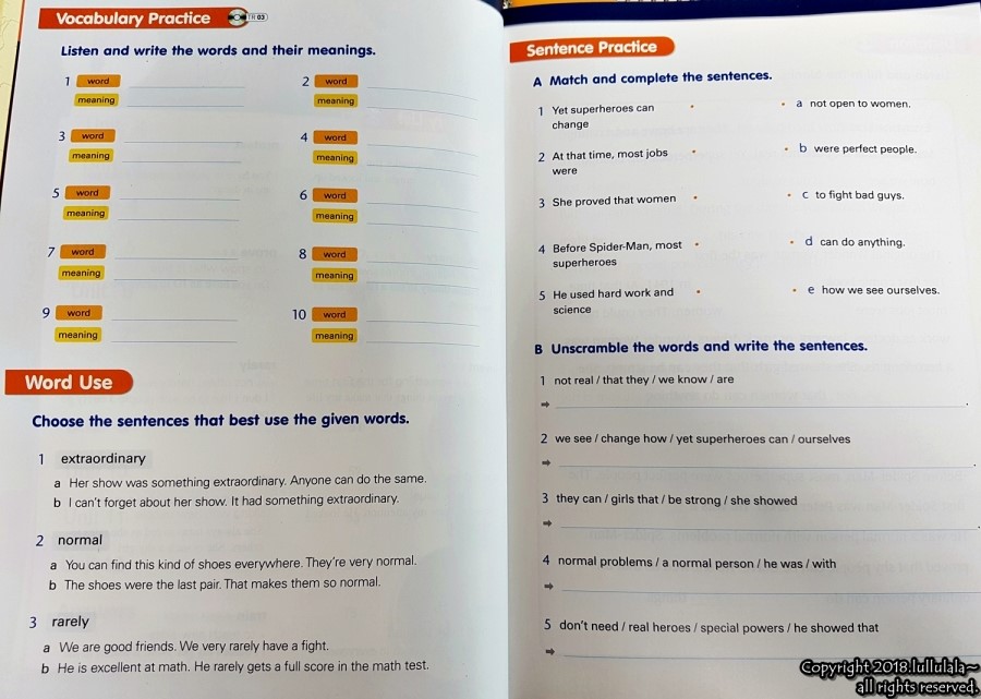 간단한 단어테스트도 수록되어 있어서, 따로 단어문제집으로 단어암기시키지 않아도 될 거 같아요.