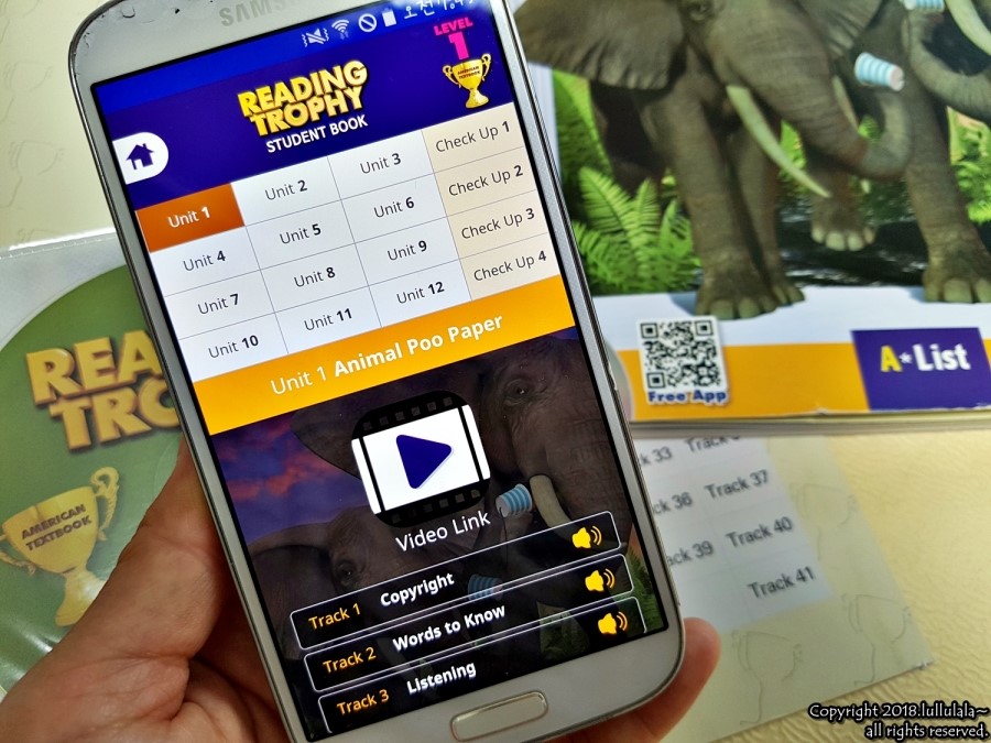 리딩트로피 앱에 링크되어 있는 영상은 배경음악만 깔리고~~  코끼리 똥으로 종이 만들어지는 전 과정을 영어 몰라도 알 수 있게 영상으로 지나가요.
