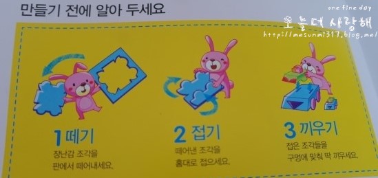 떼고 접고 끼우는거라 아이들이 쉽게 만들수 있어요.