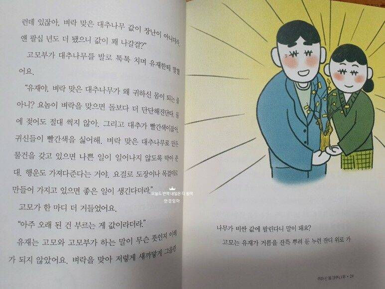 그냥 지나칠 수도 있었는데 할머니의 대추나무를 위해 열심히 싸우저ㅓ는 유재의 마음이 참 소중하고 예쁘다고 생각했어요. 앞으로라도 유재의 맑고 순수한 마음을 유재어머니가 잘 챙겨주셨으면 좋겠어요.