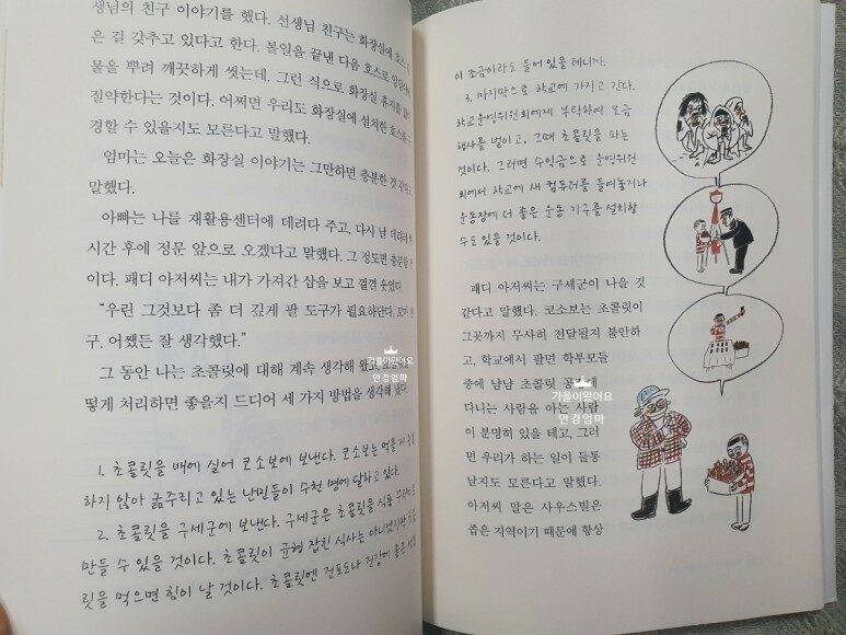 이 책을 읽어보기 전에 앞에 어린이 심사위원단의 강력 추천 한마디를 먼저 읽었는데 혹평은 해도 찾아볼 수도 없고 오직 호평만 가득했다. 그래서 엄청난 기대를 안고 이 책을 읽었는데, 역시 기대 이상이었다. 정말 좋아하지 않은 이유를 하나도 찾아볼 수가 없었다.