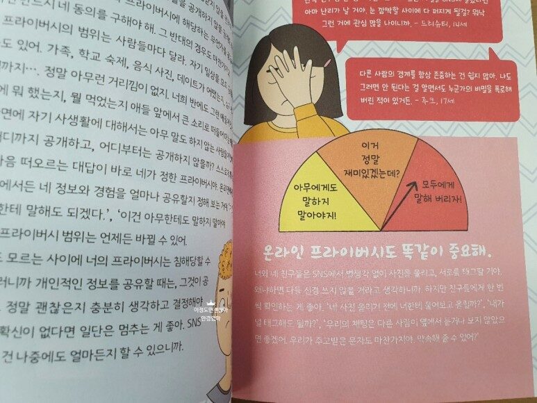 그렇지만 우리는 언제나 동의를 하지 않아도 됩니다. 내가 상황이 안되서, 마음이 움직이지 않는데 상대방의 요구와 배려라는 이유로 원하지도 않는 동의를 하면 안되기 때문에 상대방보다는 내 마음을 먼저 살피고 들여다볼수는 현명함을 이 책을 통해서 아이을이 알았으면 좋겠습니다. 거절이라는 단어가 부정적이고 하지말아야 할 행동이 아니라 정확하고 예의바르게 거절할 수 있는 방법 또한 이 책을 통해 배울 수 있어 다행이었습니다.