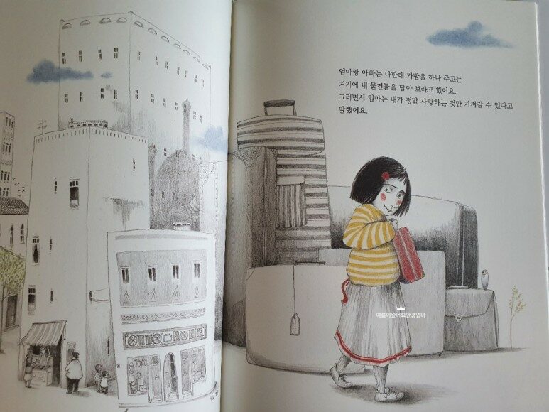 한 편의 성장 동화를 보는 듯 그림책 가득 수채화 같은 그림은 이야기와 어울어져 그 감동을 두배로 만들고 장면 하나하나가 영상처럼 이어지더라구요. 그림이 주는 묘한 몰입력은 경험해보면 알 수 있을꺼에요.