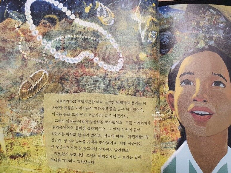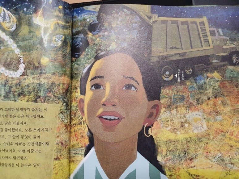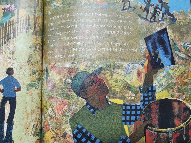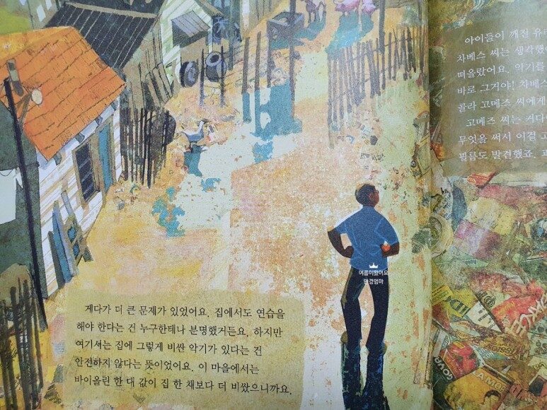 시끌벅적하고 온갖 고약한 냄새로 쓰레기 매립장이 있는 아다의 마을은 아이들 뿐만 아니라 누구나도 살아가기 좋은 환경은 아니었어요.. 가난하고 부족한게 더 많은 아다의 마을은 그 지독한 쓰레기매립장에서 쓰레기를 골라내면서 수익을 올려야 할 정도로 상황이 안 좋았지만 또 다른 할 수 있는 일은 많지 않았어요.. 그러던 중 바이올린, 기타, 첼로를 가르쳐준다는 교회 벽보를 보고 아다와 아다의 마을 사람들을 새로운 희망을 갖기 시작했어요.