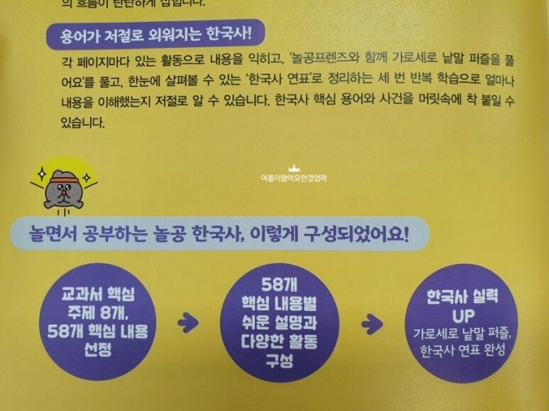 딱딱하거나 어려운 내용보다는 최대한 아이들의 눈높이에서 쉽고 간결하게 풀어주고 있어서 국사시간이 아니라 국사와 함께 놀이로 배우는 시간같더라구요.