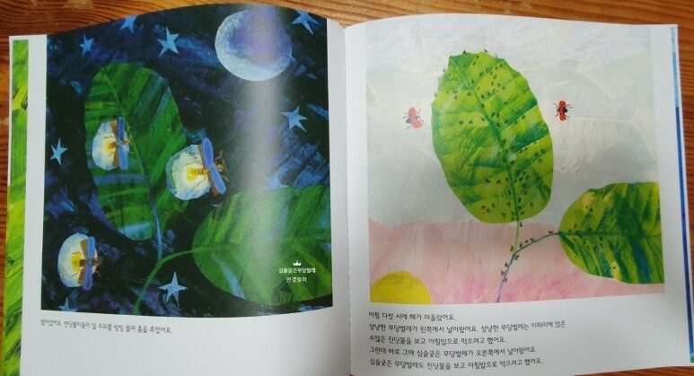 아주아주 배고픈 애벌레가 책 밖으로 튀어나올 듯 한 생생함이 있네요.