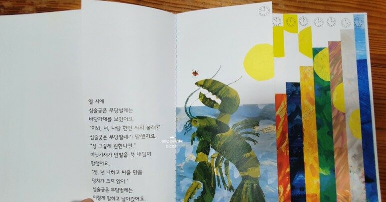 책 끝에 아주 조그많게 있는 시계를 보면서 시간의 흐름도 파악할 수 있어요.