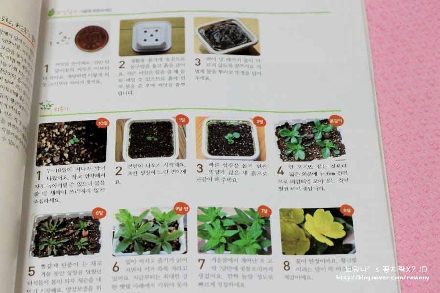 씨앗 사진부터 시작해서 시간의 흐름에 따라 커 가는 모습까지..