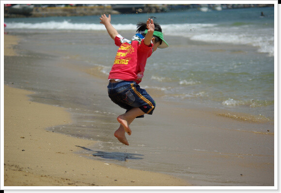 그래서 이날은 해운대는 과감히 포기하고 달맞이 고개를 지나 청사포를 넘어 송정해수욕장에 안착 신나게 놀다 왔다는 짧은 휴가의 되돌림이다. 여기서 팁은 송정은 해수욕장이 곱고 물이 차지 않으며 한참을 나아가도 어른 무릎께 밖에 물이 오지 않아 아이가 있는 집은 놀기에 딱이다. 아쉬운 것은 해수욕 후 샤워시설이 있기는 하지만 온수가 제공되지 않아 샤워 도중 울부짖음에 시달린다는 사실. 뭐 그래도 해가 뉘엿뉘엇 폐장 직전이 아니라면 참을만 하다. 샤워장에 공급되는 물이 민박집 주인장 왈, 천연 자연 암반수를 뚫고 올라온 지하수입니데이. 조금 찹습니더...^^