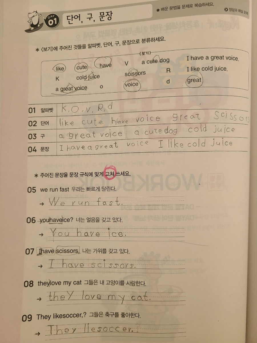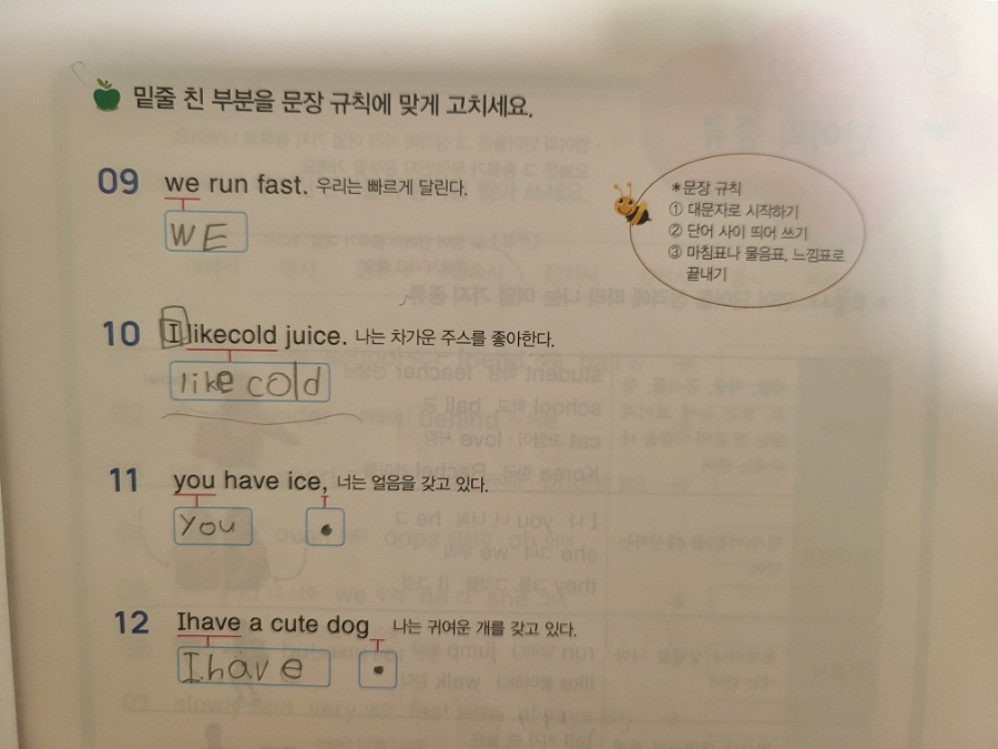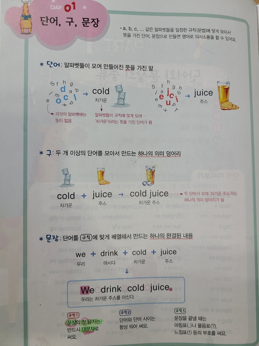 말을 넣어서 친구에게 할말을 써볼까요?