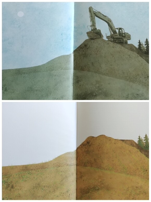 굴착기로 파헤쳐진 황무지 구릉에~~~