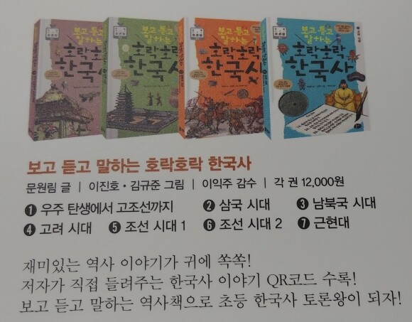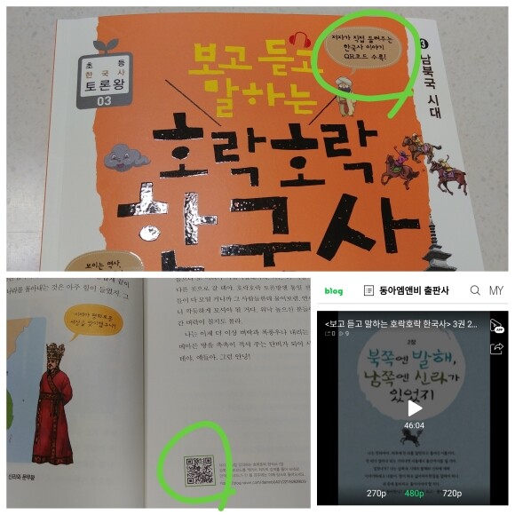 보고 듣고 말하는~!!!이라는 타이틀이 붙어 있는 이유는~??QR코드를 인식 시키면~??? 정말~!! 저자의 목소리로~ 책의 이야기를 직접 들을 수 있거든요~ ^^책의 내용을 스스로 보고~재밌는 이야기꾼들이 등장해서 들려주는 그 시대의 이야기를 듣고~역사 관련 토론을 어떻게 할 수 있는지 가이드를 참고하여~ 나의 의견을 직접 말해 볼 수 있는~보고 듣고 말하는 호락호락 한국사03 남북국 시대~!!!