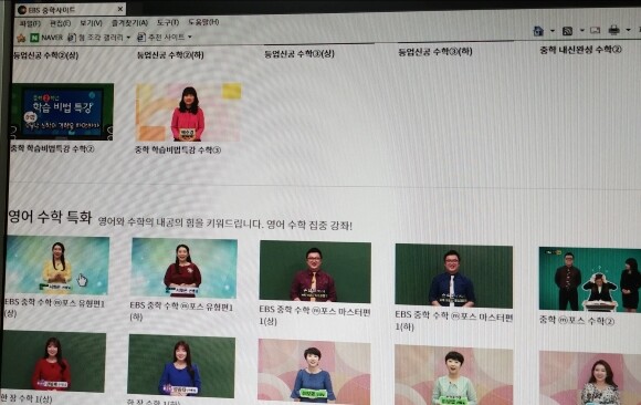EBS 중학 사이트에서 관련 강좌를 찾아서