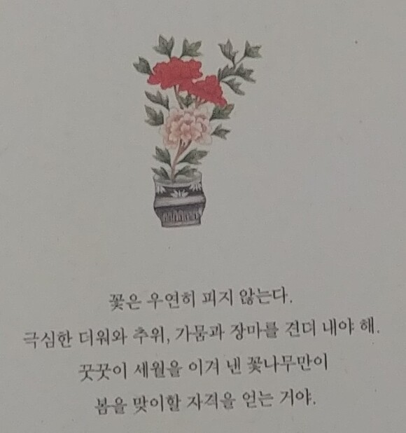 꿋꿋이 세월을 이겨 낸 꽃나무만이 봄을 맞이할 자격을 얻는 거야.