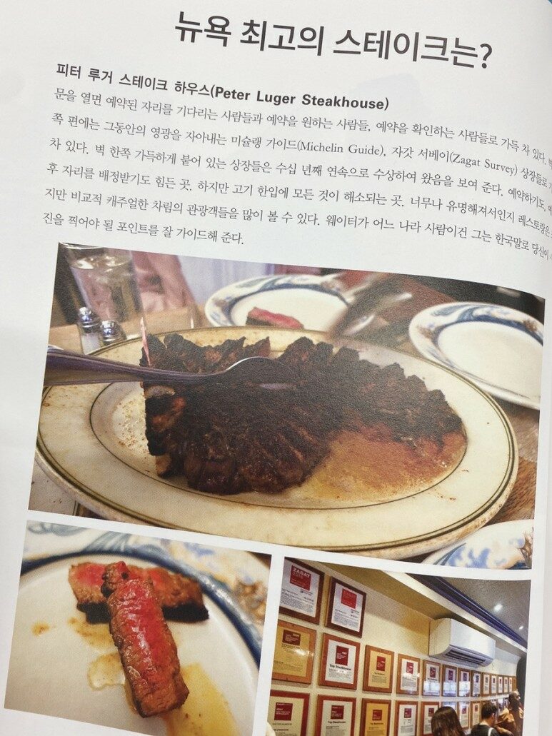 하... 이 서술을 읽고 그 누구가 스테이크를 먹고 싶지 않을 수 있을까? 피터 루거 스테이크 하우스...... 언젠간 내 미국 땅을 밟아 저 곳을 가보리다 ㅠㅠ