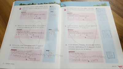 수학 문제 옆에 세로 계산칸이 따로 되어 있어 아이가 더 수월하게 문제를 풀었네요..