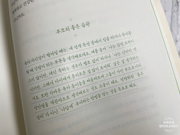 이다랑 대표님의 부모의 좋은 습관에서 이야기해주는 것처럼 내가 갖고 있는 특성에서의 강점을 생각하며 나답게 육아하면서 아이에게 조금 더 도움을 줄 수 있는 부분을 생각해야겠어요.