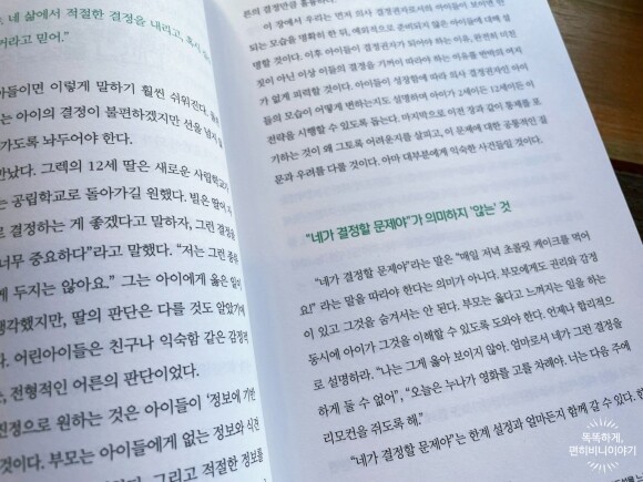전 아직 10살의 아이를 키우고 있기 때문에 이런 선택을 맡기는 부분이 이제 시작이기 때문에 어쩌면 더 이 책이 어렵지 않게 다가올 수 있었을 것 같아요.