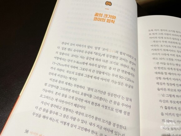 저를 포함한 많은 부모들이 겉포장으로 아니라고 하지만 아이들에게는 이런 생각을 가지고 대하고 있었지 않았나 하는 생각이 듭니다. 주위에 압박에 의해서든 아이를 사랑한다는 이유로 아이를 실패하지 않게 하기 위해서든 우리는 실수를 하고 있었을 수도 있는 거죠.
