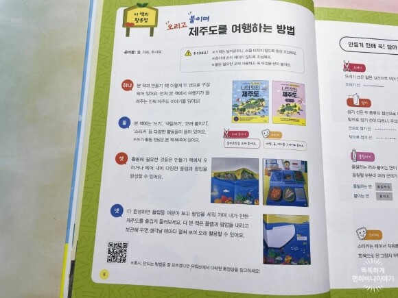 꼭 제주도 여행 계획이 없더라도 예전에 다녀온 적이 있더라도 또 미래에 가보게 될 거라도 큰 상관은 없어요. 우리나라의 멋진 관광명소에 대해 알아보고 직접 나만의 책을 만들어 본다는 의미에서 참 좋다는 생각이 듭니다.