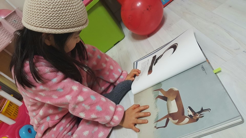 아래 사진 우측에 보면 작은 연두색 포스트잇이 붙여져 있는데, 아이가 자기가 젤 좋아하는 동물이라 일부러 표시해두었다네요.