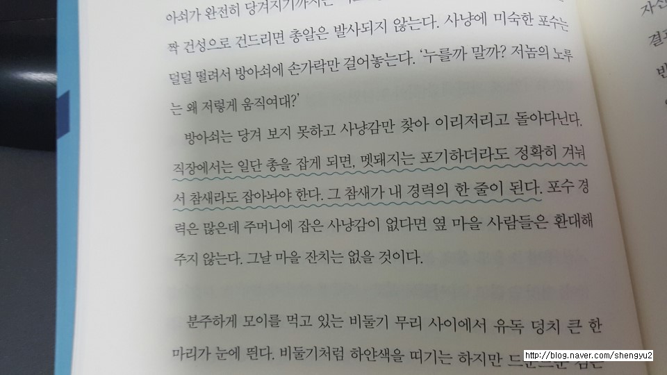 "직장에서는 일단 총을 잡게 되면 참새라도 쏴야 한다. 그 참새가 평생 당신의 한 줄 경력이 된다"