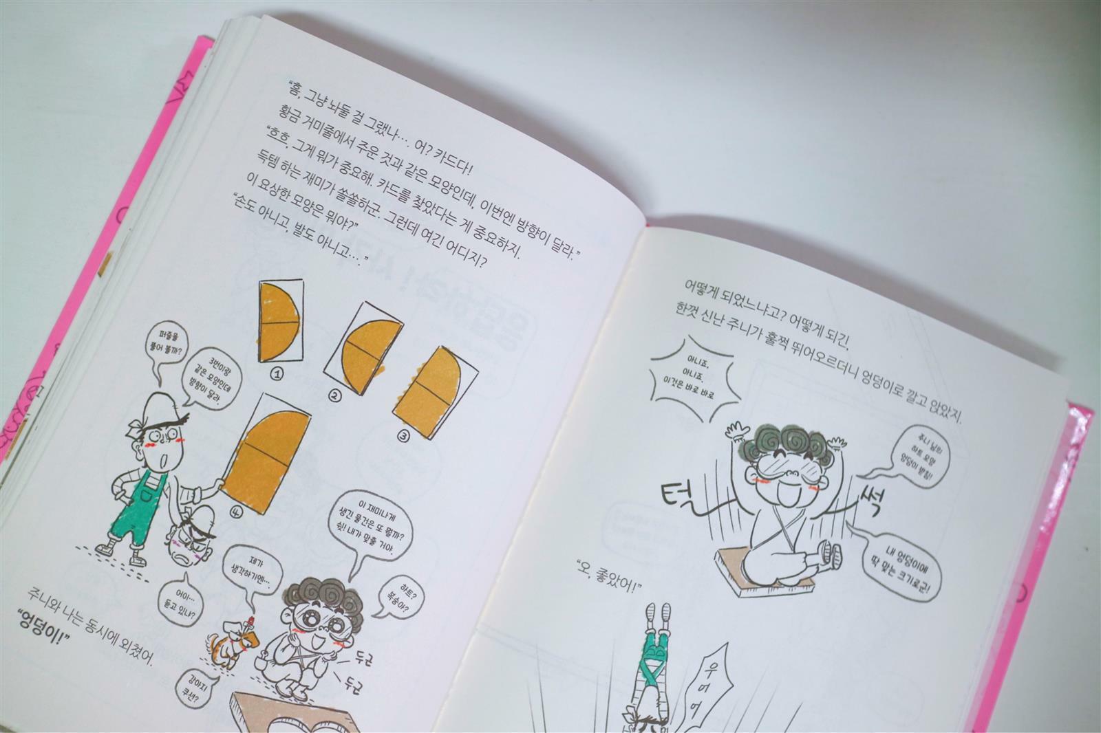 사실 엄마 입장에서는 줄글과 만화가 한데 섞여 심난하기도 한데 아이들 눈으로 봤을 땐 이곳저곳 그려진 낙서같은 만화나 말장난 같은 것들때문에 자칫 어렵게 느껴질 수학동화도 지루하지 않게 읽어내는 것 같다.